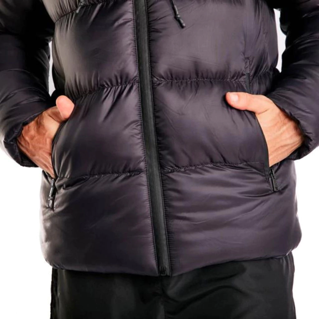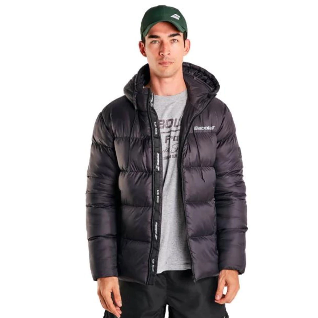 De calce regular, cuenta con capucha ajustable, cierres termosellados con tiracierres con logo, parche rubber aplicado en la manga, puños internos tejidos, y los logos de la marca estampados.