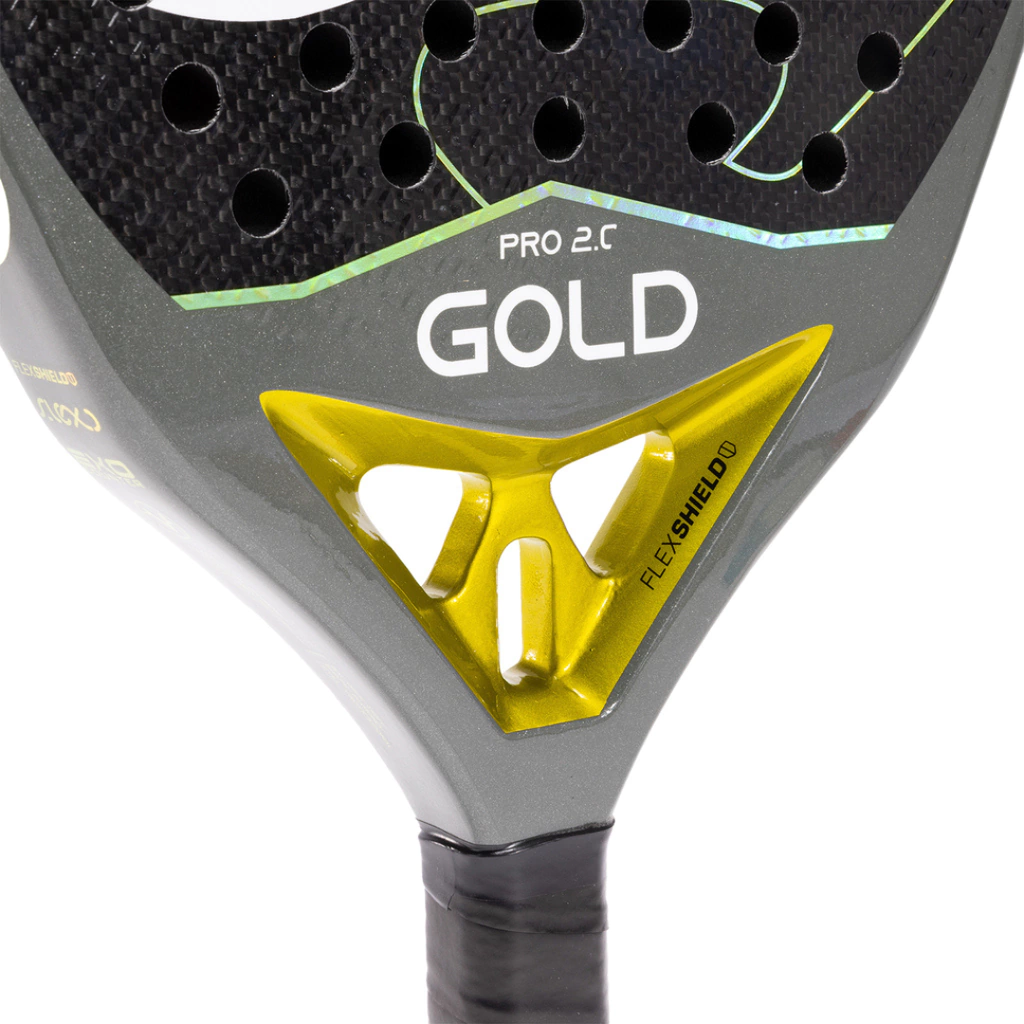 El sistema avanzado VIBRA-OUT Gold reduce en un 40% las vibraciones producidas al golpear la bola, lo que garantiza mayor confort y protege al jugador de posibles lesiones por impacto repetido.