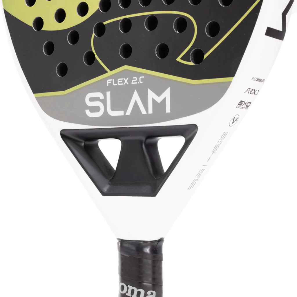 La paleta Slam Flex incorpora también el sistema VIBRA-OUT Slam, que logra reducir hasta un 40% las vibraciones durante el golpe, minimizando el impacto y mejorando la comodidad del jugador en cada intercambio.