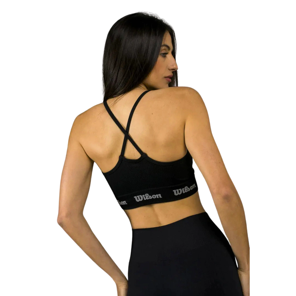 Top escote en V con breteles cruzados en espalda.